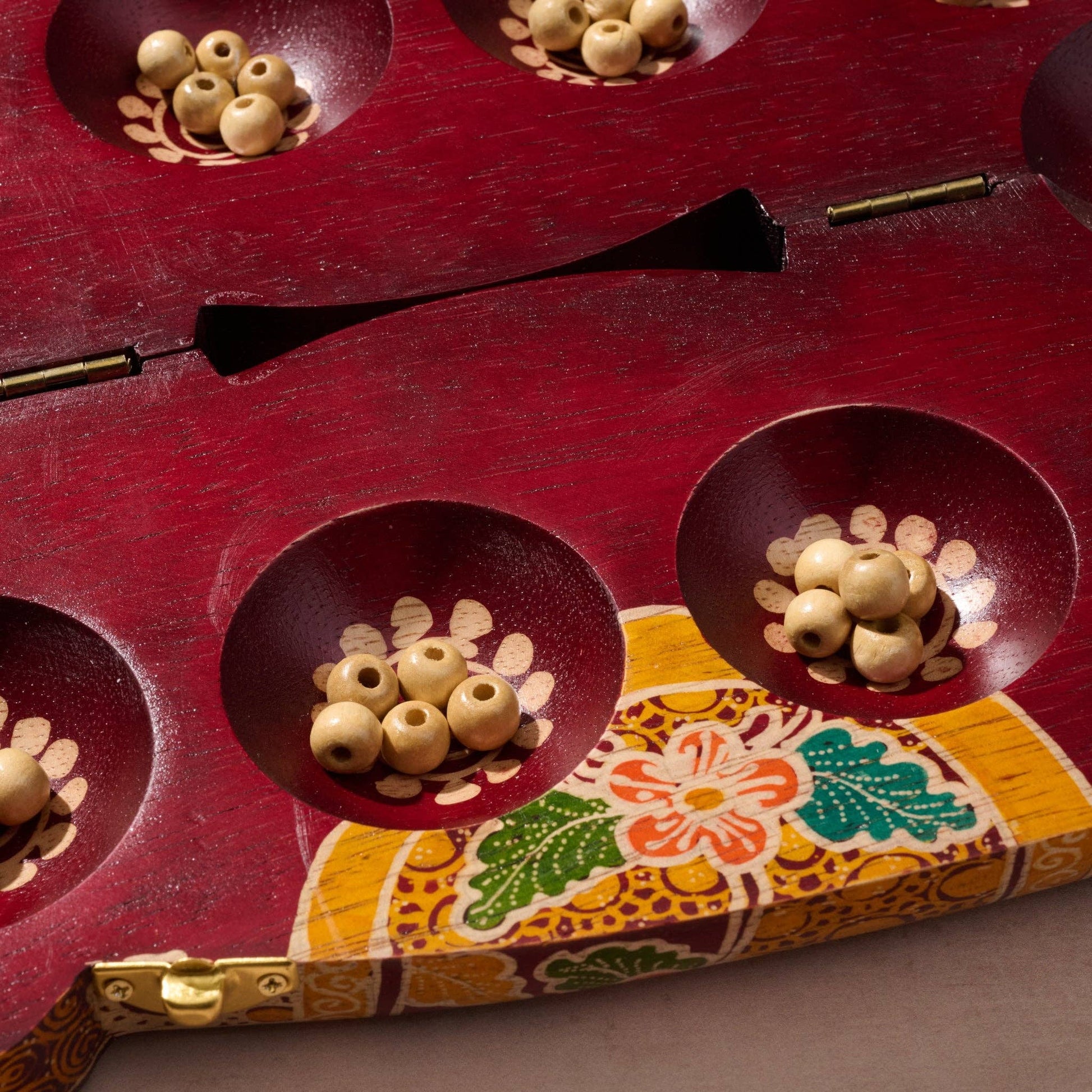 Bring a fresh new twist to game night with this cool dakon set! This beautifully crafted game features a folding batiked board in the shape of an elephant adorned with a vibrant floral design. Complete with 55 wooden beads and instructions, this game will provide endless hours of entertainment. Made with ethically sourced albizi and acacia wood, it's an eco-friendly and attractive addition to any game collection. Handcrafted in Indonesia.