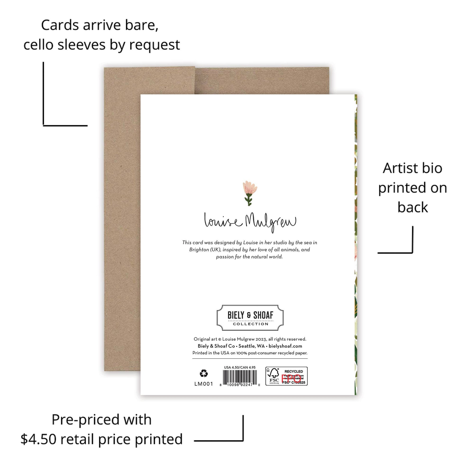 About the artist: Working with gouache and watercolor, Louise designs in her tiny studio in Brighton, England, inspired by her love of all animals, and passion for the natural world. Louise was named 2023 Artist of the Year by the USA Greeting Card Association.