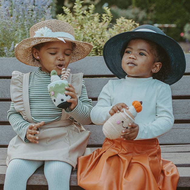 Inspire tea parties with this adorable plush cup of tea! Designed for little hands to hold, this baby toy is sure to bring hours of pretend play. The rattle inside gives a very soft sound when shaken.