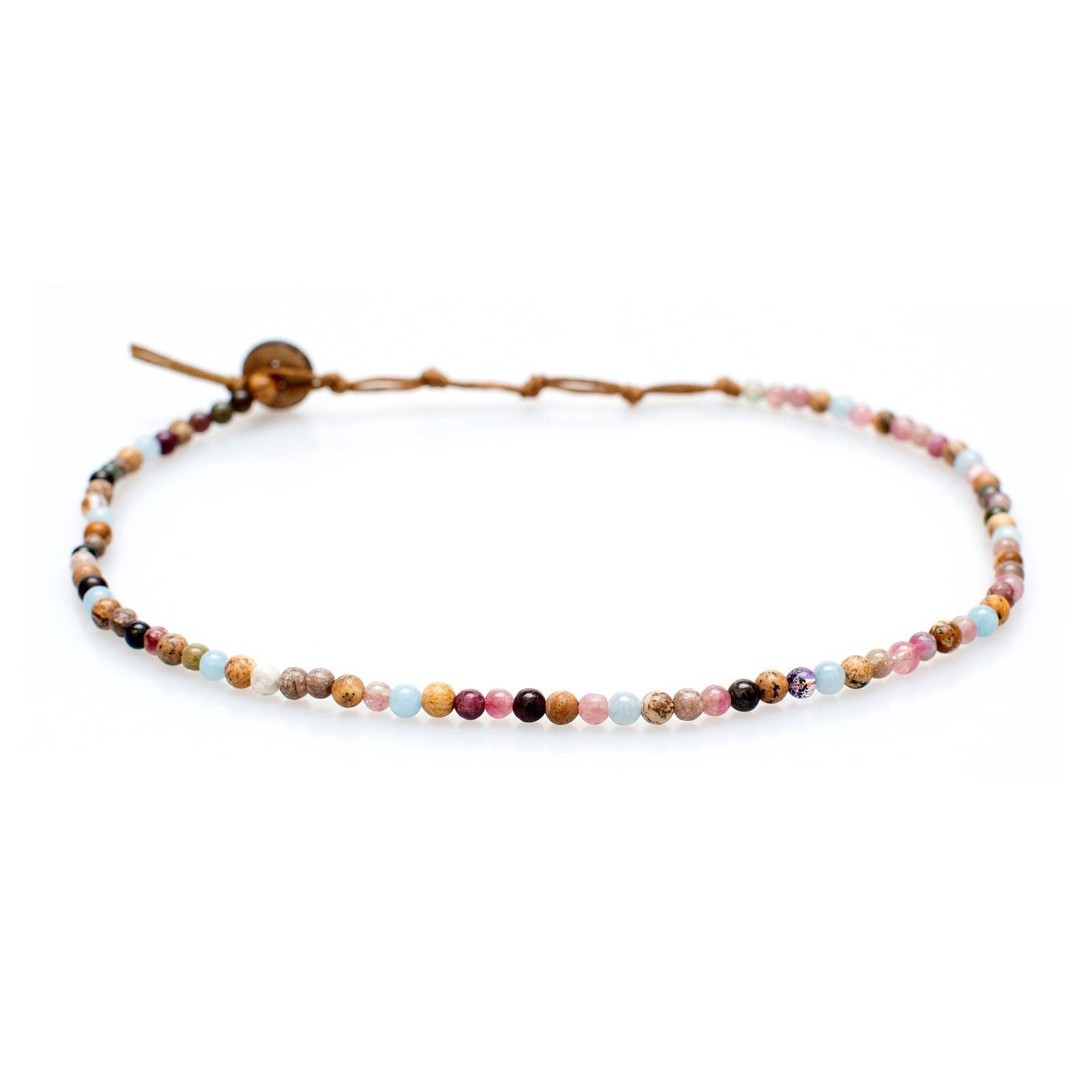 Our necklaces are made with cotton cords, coconut shell clasps, semi-precious stones with healing and positive vibes. Each necklace has 4 different size options to adjust to your perfect fit; snip off any excess cord. This necklace can also be worn as a double wrap bracelet!