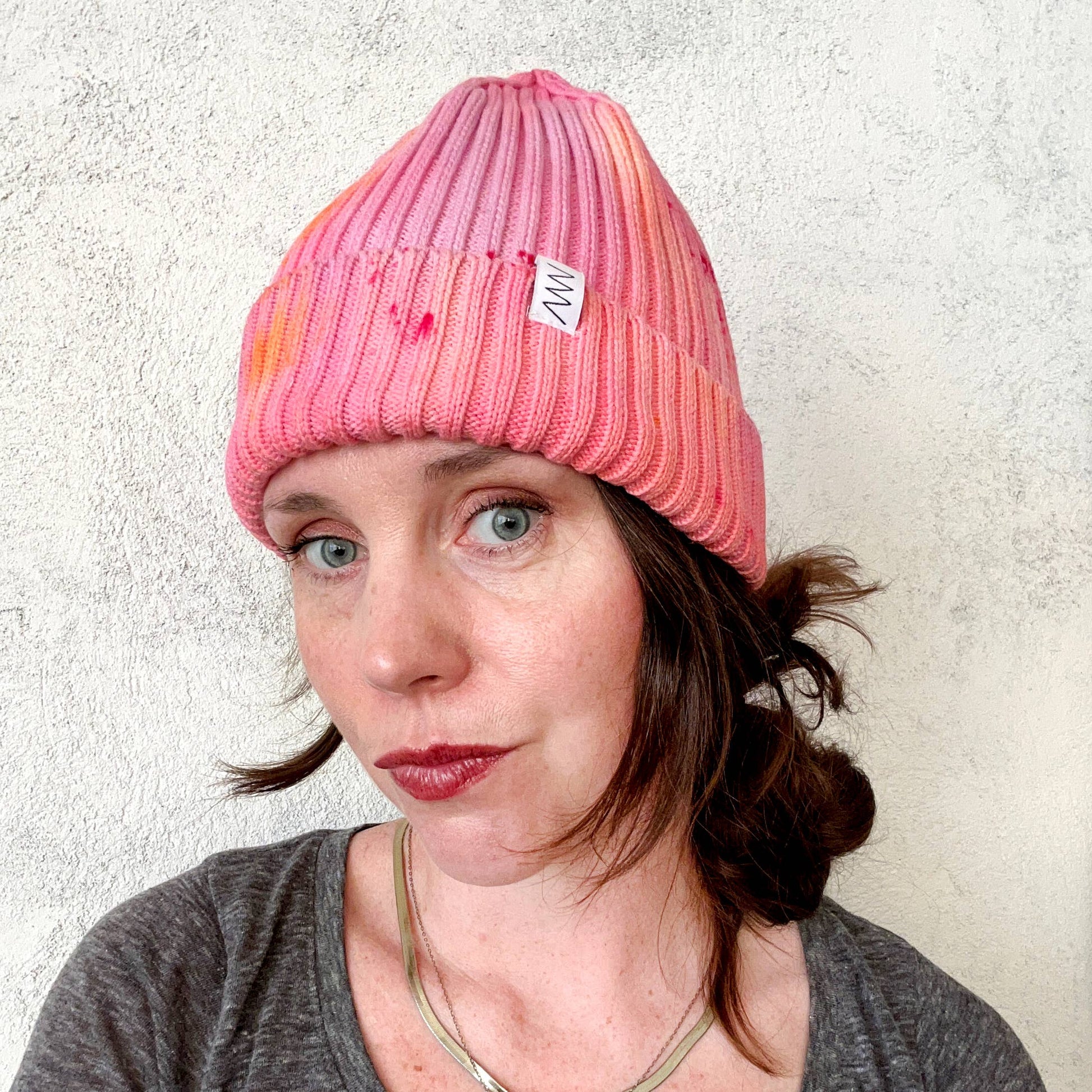 80% cotton 20% poly ribbed knit beanie hat. Woven Merle Works logo tag on rim, can be worn cuffed or uncuffed for a slouchier fit. One size fits all. Unisex.