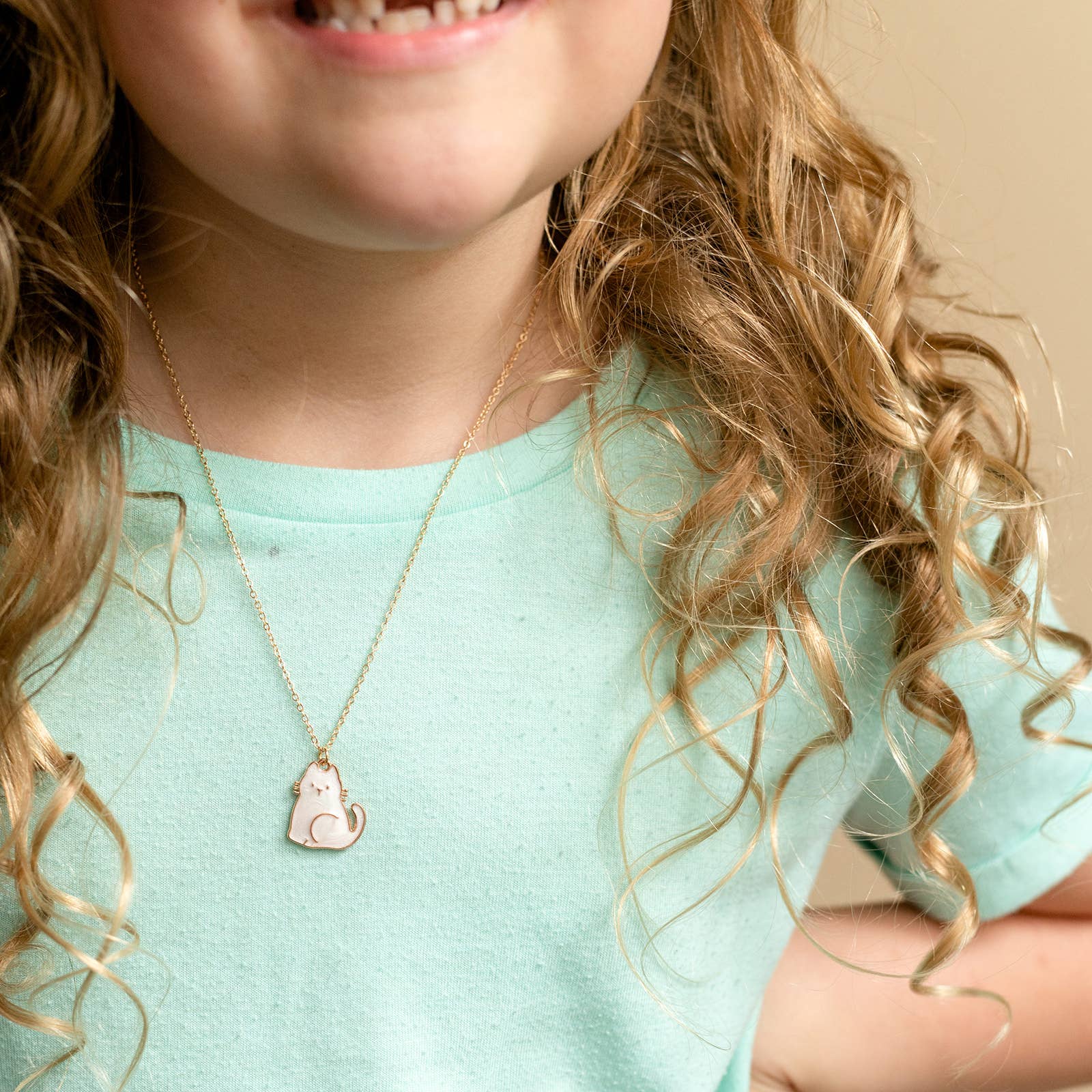 Sitting White Cat Enamel Charm Necklace Children's Jewelry