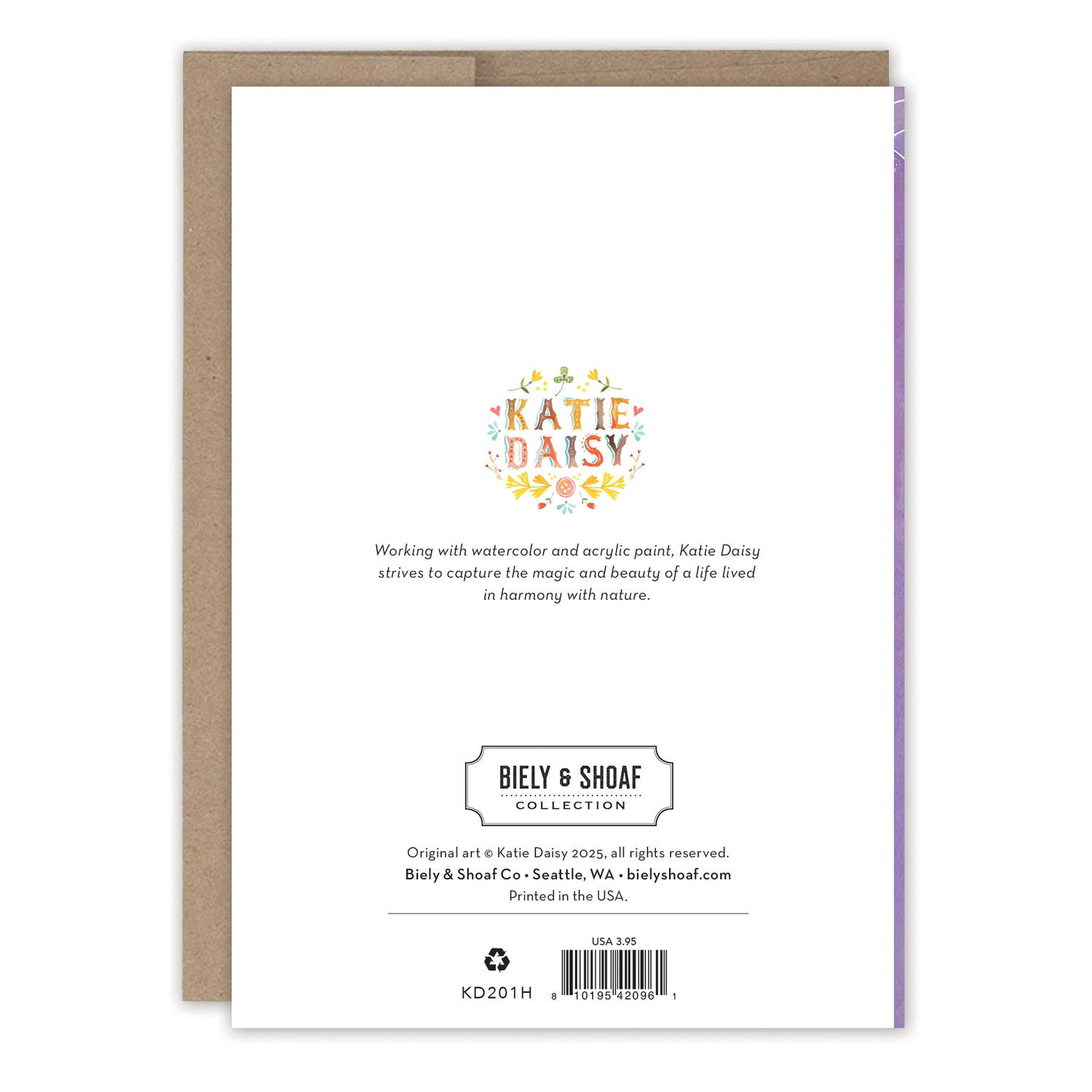 About the artist: Katie Daisy was raised by the birds and warm breezes of small-town Lindenwood, Illinois, brought up among the wildflowers with roots planted deeply in the natural world. Working in watercolor and acrylic paint, Katie strives to capture the magic and beauty of a life lived in harmony with nature.